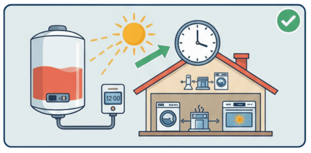 Si tienes un termo eléctrico para el agua caliente, tienes una «batería» de energía en casa y no lo sabías.Dejarlo encendido todo el día o encenderlo al llegar a casa para ducharse.