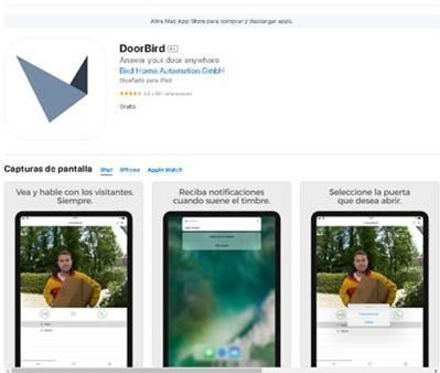 Descargar la aplicación llamada DoorBird en tu móvil Android o apple A través de los siguientes Links: