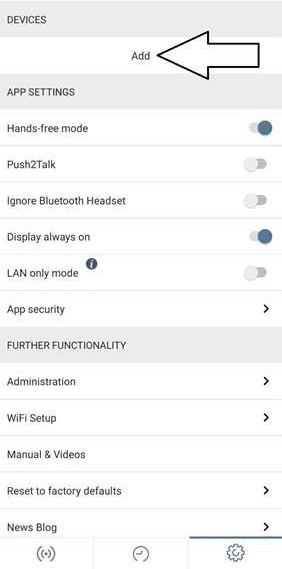 Presionas ok y la aplicación te indicara que agregues un dispositivo en la sección que dice Device «ADD»