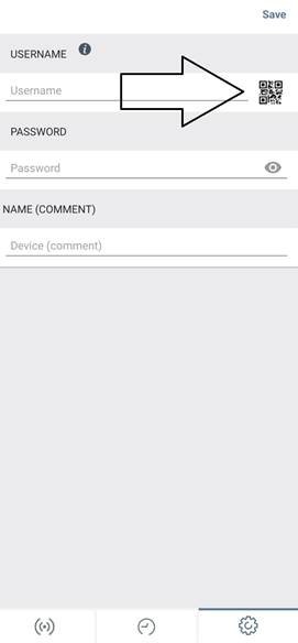 Puedes agregar el dispositivo con el pasaporte digital que se ha enviado previamente, puedes escanear el codigo QR (presionando el simbolo de Codigo QR) o de Manera manual ingresando el Nombre de usuario y contraseña.